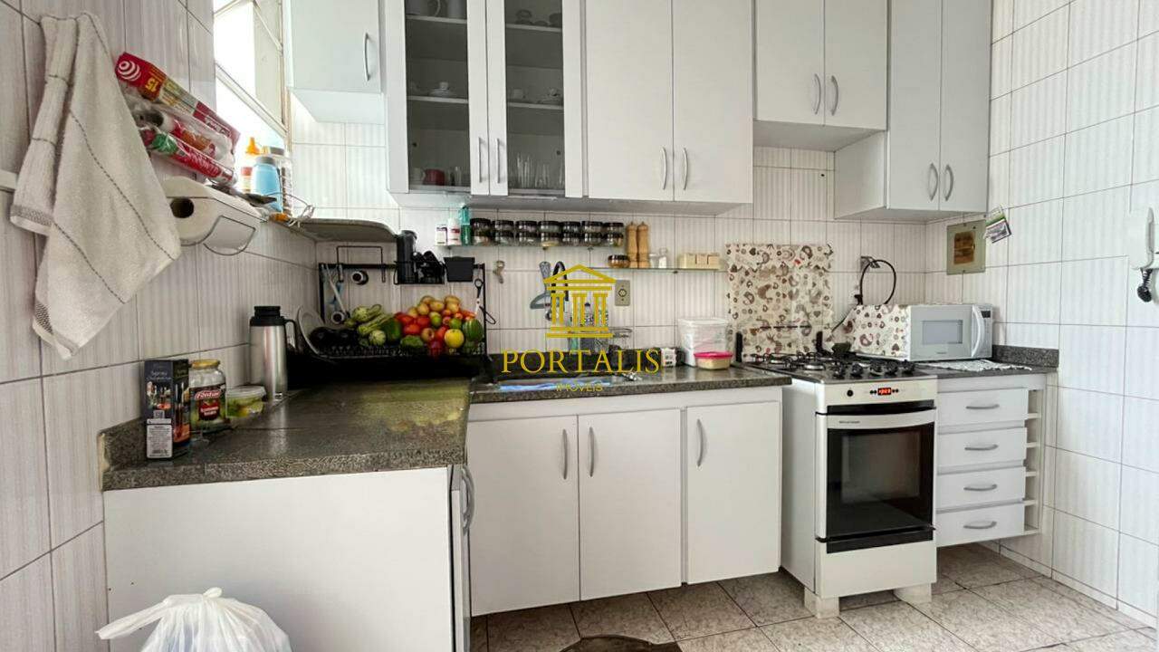 * Cozinha com armários, bancada em granito, piso em cerâmica